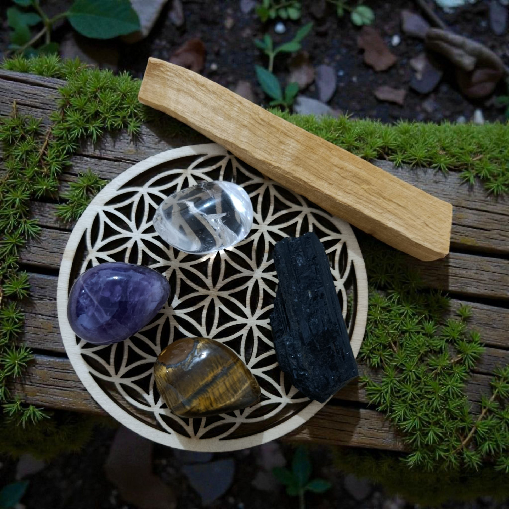 Chaque pierre a été soigneusement sélectionnée afin d’offrir une base solide : protection, apaisement, clarté d’esprit et force intérieure.