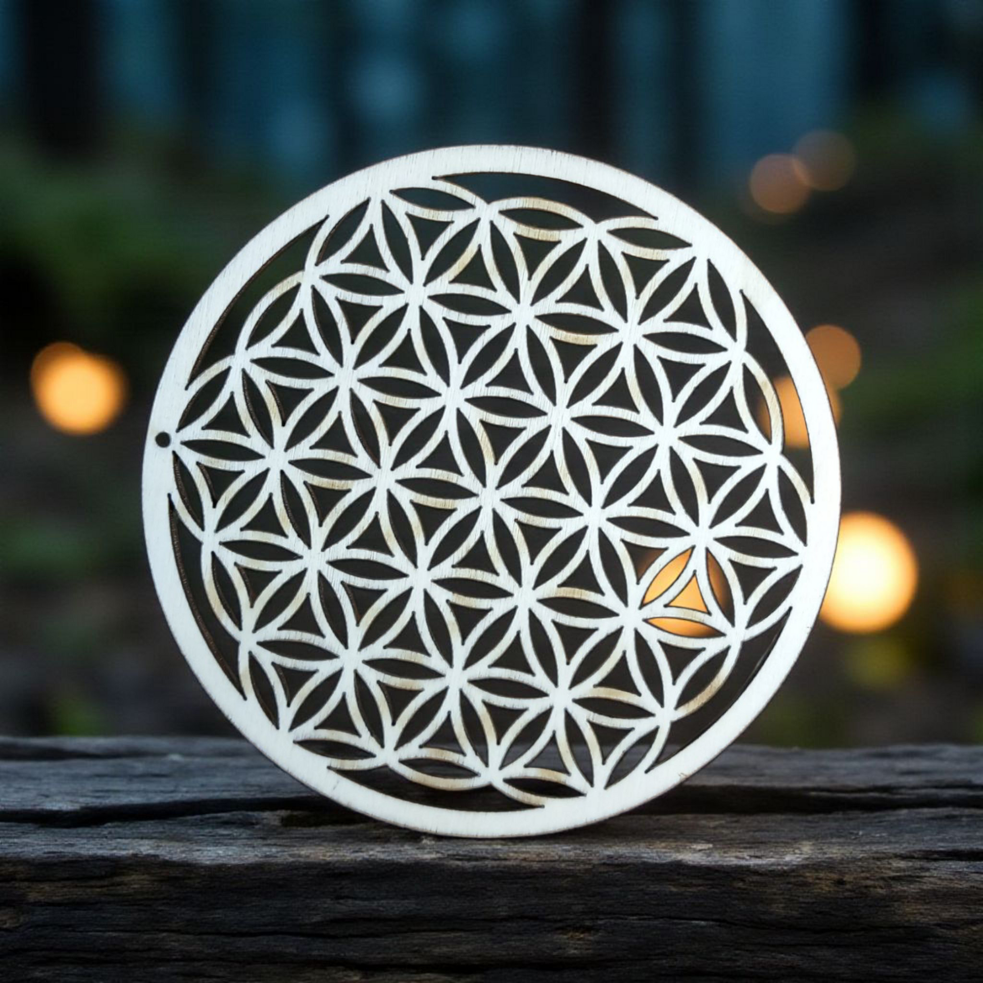 La Plaque de Rechargement en Bois gravée de la Fleur de Vie est un outil énergétique incontournable pour purifier et revitaliser vos pierres, bijoux et pendules.